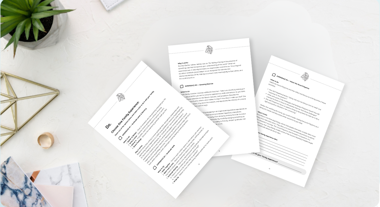 One guided family experience and simple mini habits bring gratitude into daily life — naturally, without overwhelm.