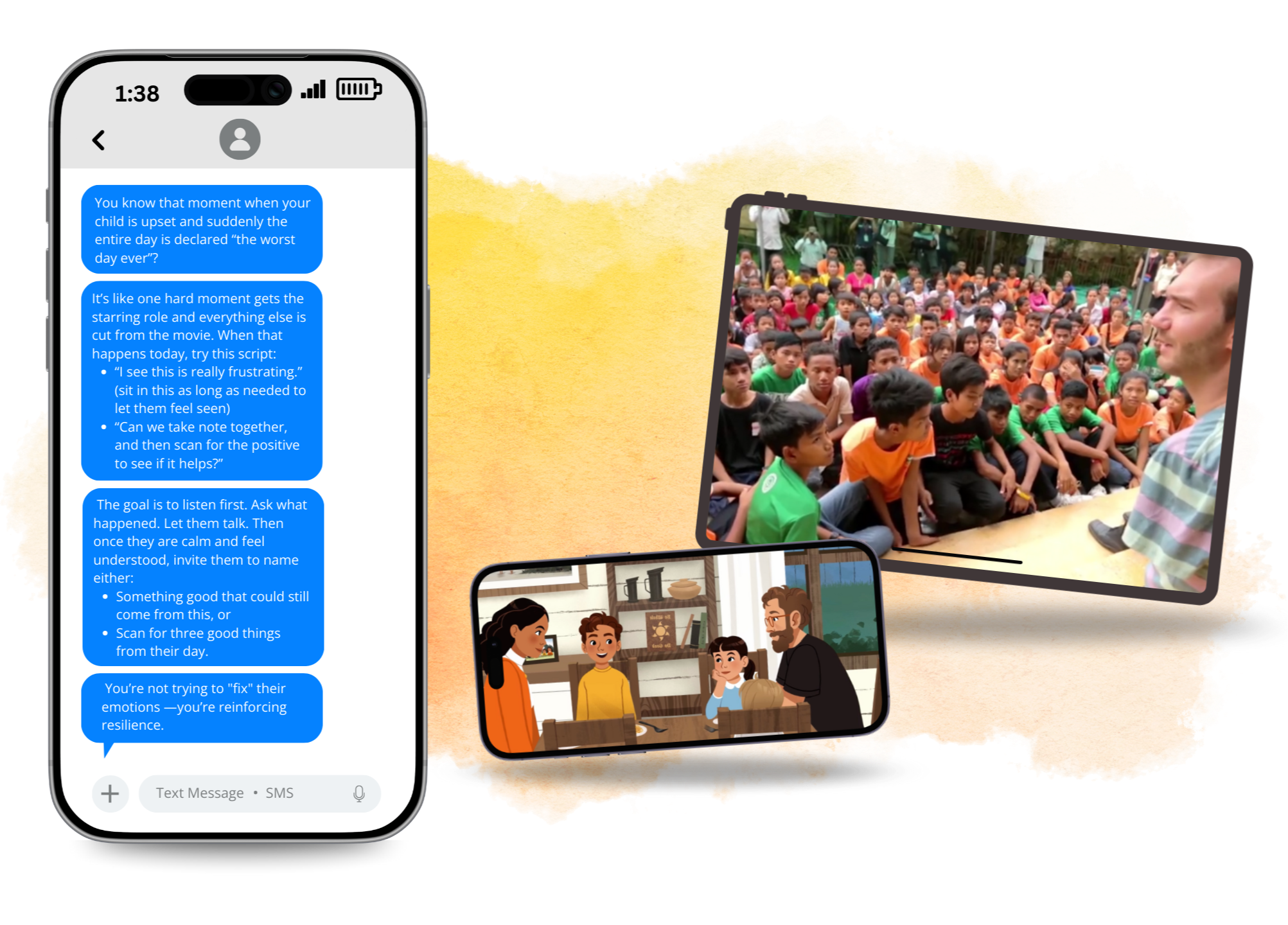 Parents receive short, daily text message prompts to cultivate gratitude with their kids