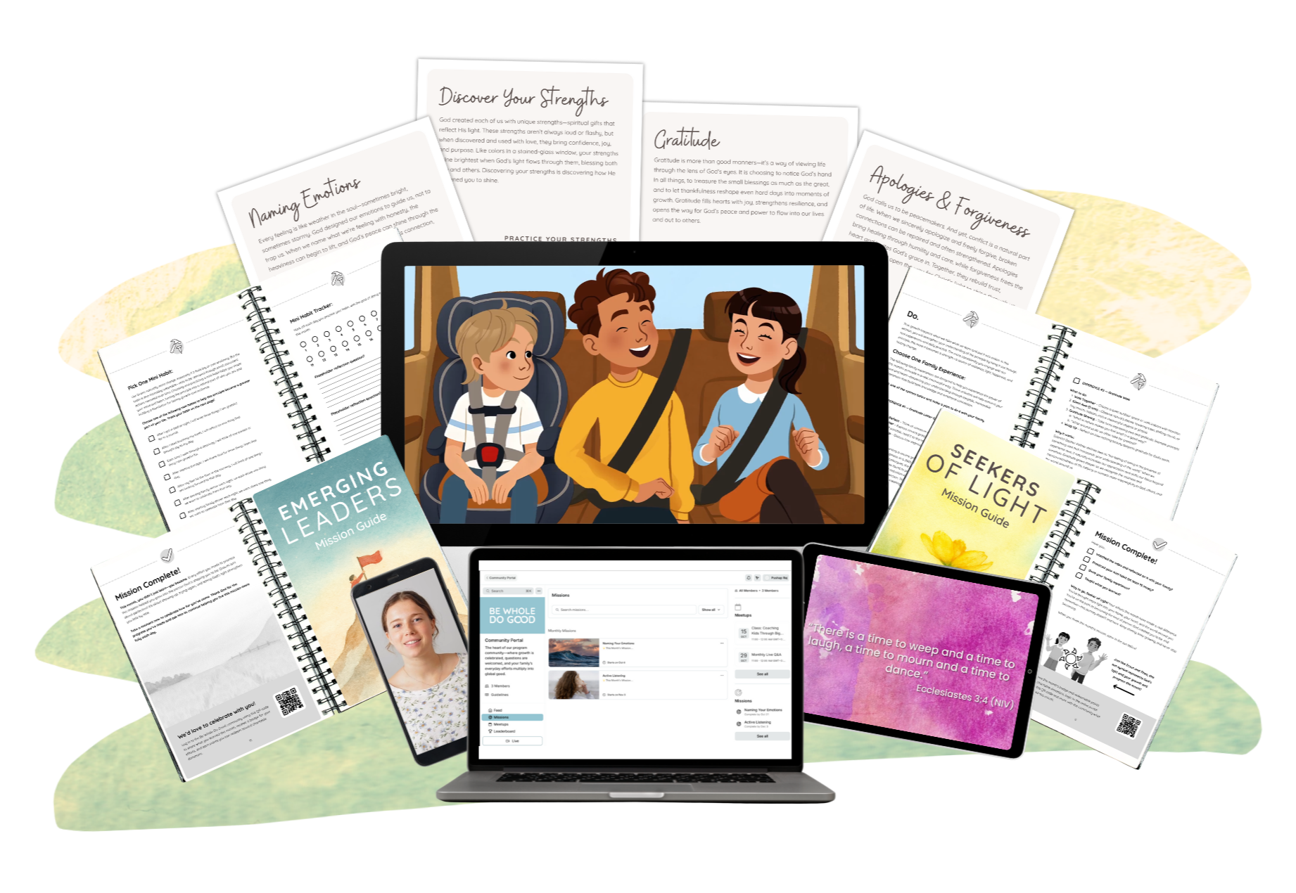 That’s why Be Whole Do Good was created: a simple, sustainable membership for busy Christian families that supports whole-person growth—faith, character, resilience, and purpose—without adding overwhelm.